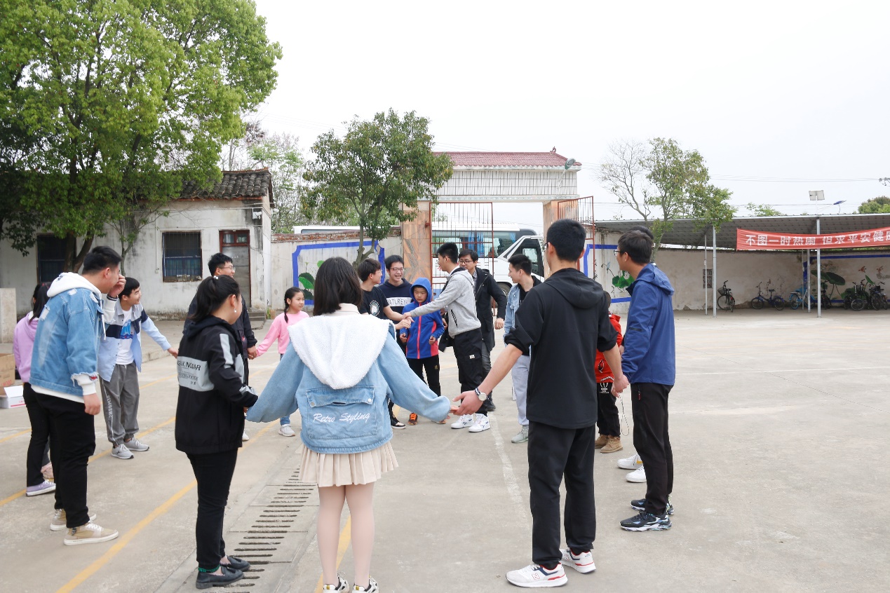 船海学院的大学生代表与藕塘小学的小学生们通过游戏的方式选择了自己的结对对象,并一起参与踩报纸、击鼓传花等小游戏,让同学们打破了界限,建立了友谊。