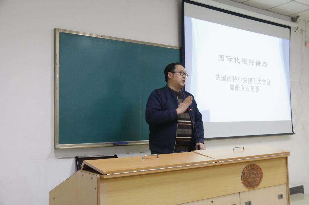 当晚,李春来老师在东九教学楼以“法国南特中央理工及船舶专业剪影”为主题面向伟德国际1946学生开展了国际化视野讲座。李老师详细介绍了法国南特中央理工的精英教育模式、学制特点、船舶相关专业主要课程及与伟德国际1946的“3+1+2”本硕连读国际合作项目,为同学们开拓国际视野、了解法国高校船舶专业学习及研究情况提供了生动而全面的讲座内容。李老师还就防疫安全、语言交流等方面与同学们进行了充分交流。