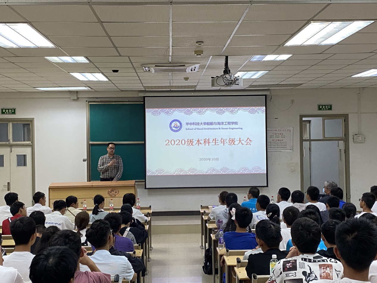 10月2日晚,船海学院本科20级年级大会在东九教学楼召开。院长解德教授出席会议,院党委副书记谢宇翔老师主持会议。