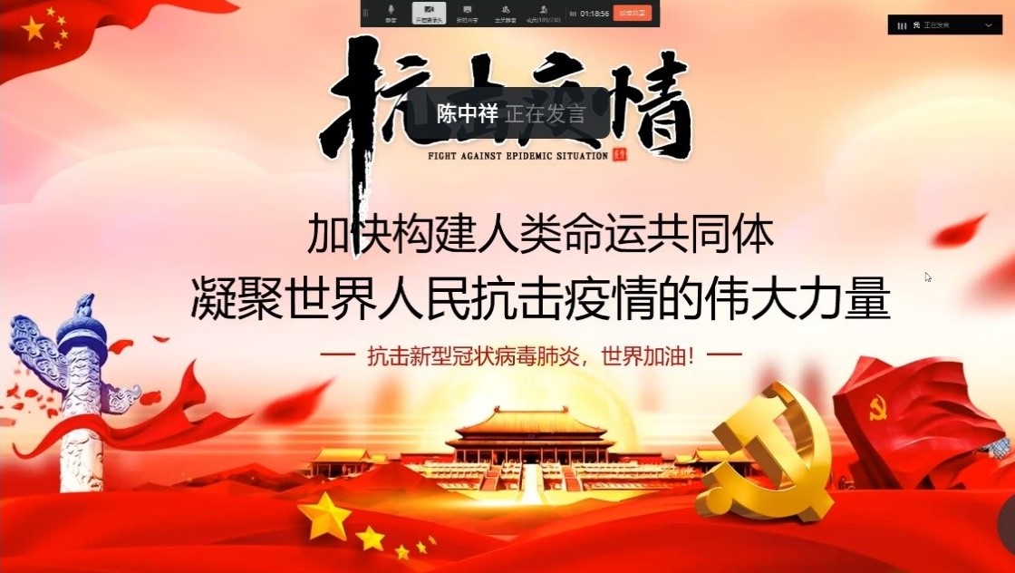 面对新冠疫情,总书记说“公共卫生安全是人类面临的共同挑战,需要各国携手应对。”轮机研究生第一党支部覃学良首先向大家阐述了新冠疫情对世界政治、经济的影响:重塑今年的国际政治议程、国际多边合作的必要性空前提高、国家安全和国际安全面临新挑战、全球治理面临新冲击、全球经济或许会遭遇比08年更大的危机。接着,轮机研究生第二党支部陈中祥向大家阐述了在这样的时代背景下构建“人类命运共同体”意义和面临的现实困境,分享了中国在此次抗疫中积极推进“全球”抗疫的努力,分享了关于中国应对挑战推进人类命运共同体建设的政策建议。