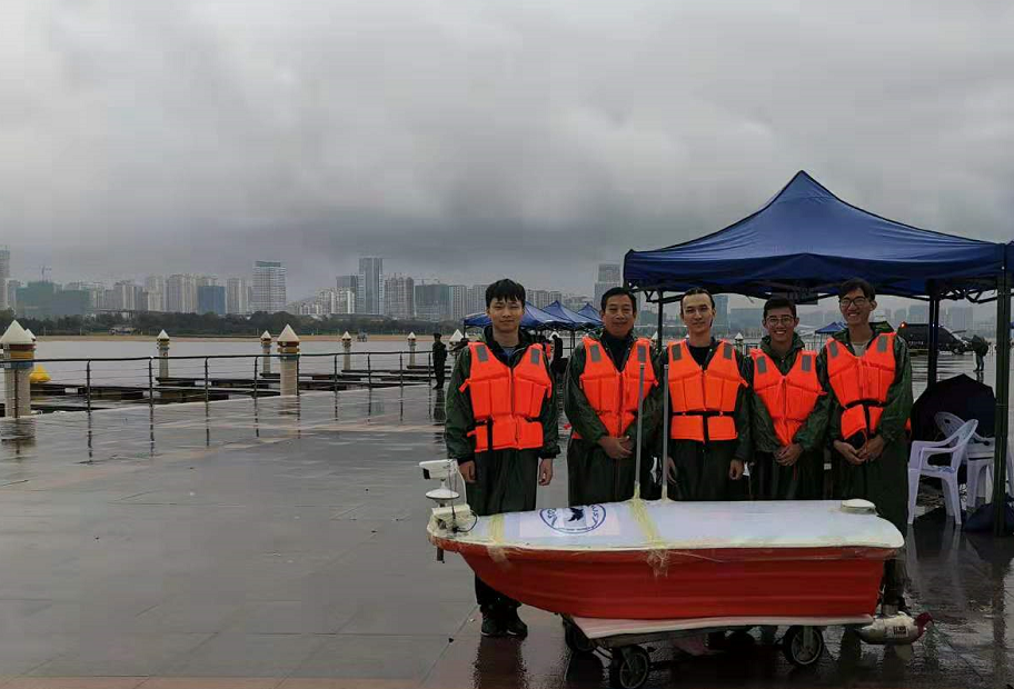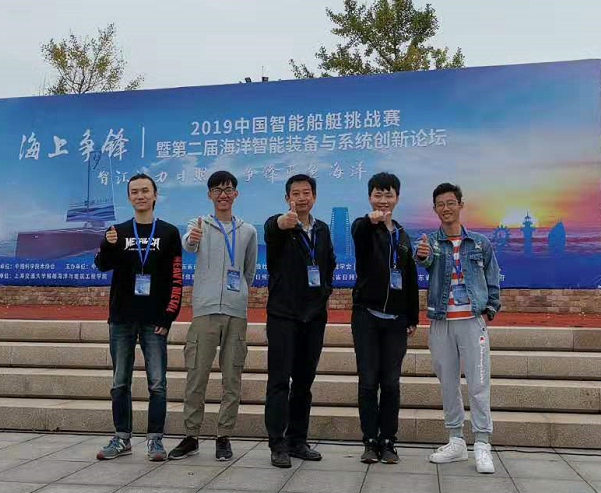 伟德国际1946智能无人船团队在轮机工程系唐国元老师带领下,率研究生同学一名及2018级轮机工程本科生同学三名,经过三个月紧张筹备,先后克服了信息弱连接、环境强干扰、识别有迟滞等技术难题,并携“飞电绝影”号智能无人船,与国内众多著名高校及行业内专业公司的智能无人船团队同台竞技,在比赛当天风雨交加、浪高流急的情况下,表现稳定,并战胜众多强劲对手,成功获得A/B组亚军,并获得赛事二等奖。