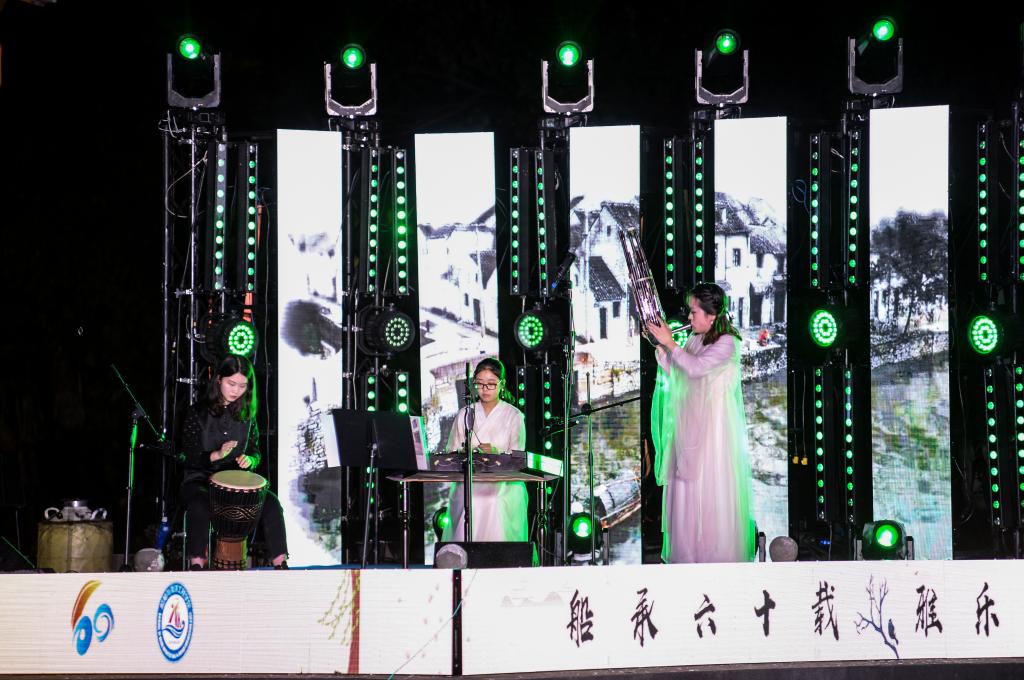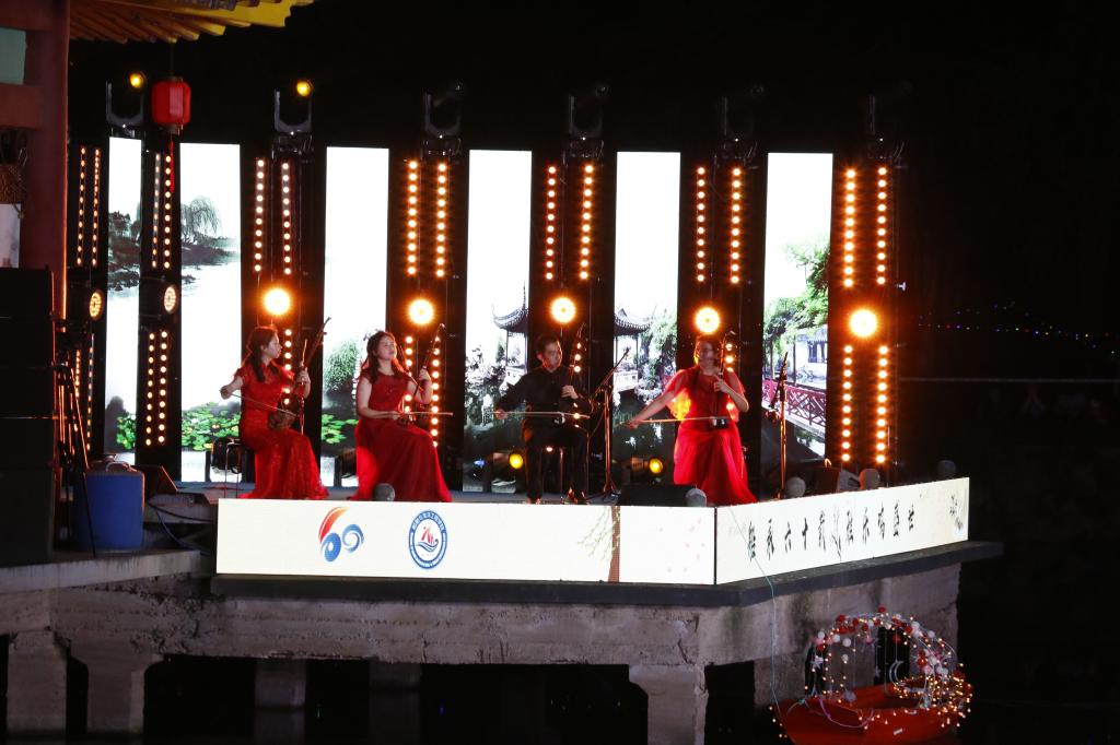 “此夜亭中闻曲音,何人不起醉晚情”。篇章二追忆醉晚人传承醉晚二十余载,坚守醉晚音乐艺术、传承醉晚精深文化的执着信念。武汉音乐学院的胡琴四重奏《数蛤蟆》具有浓郁的湖北地方色彩,具有幽默、欢快与爽朗的音乐特点与情趣。我校的笛子重奏《跑旱船》,将浓郁的中国民间音乐元素和喜庆祥和的音乐氛围融入到了欢快跳跃的笛声中,描绘了跑旱船欢快热闹的场面。华中师范大学的古筝重奏《沙漠玫瑰》释放出了无限的西域风情,展现出沙漠玫瑰在万里黄沙中妖娆绽放的倔强姿态。