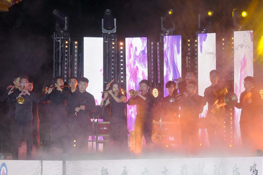 武汉音乐学院学生吹打乐组合以一曲《龙腾虎跃》开场。乐曲情绪炽热,民族风格浓厚,旋律与鼓声交相奏鸣,震撼人心,表现了人民龙腾虎跃,奋勇前进的风貌,为后续节目的演出渲染了气氛,引人入胜。