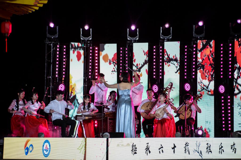 “船承千里六十载,桃李敢为天下先”。华中科技大学带来的民乐合奏《塔吉克的节日》,形象的描绘了塔吉克民族粗犷豪放的性格和节日里欢快、热烈的场面。中南民族大学的琵琶二重奏《彝族舞曲》,以抒情优美的旋律,粗犷强烈的节奏,描绘了彝家山寨迷人的夜色和人们欢乐舞蹈的场面。华中师范大学带来一曲《赶街》,“一年一度三月街,好似春风吹开红山茶。”