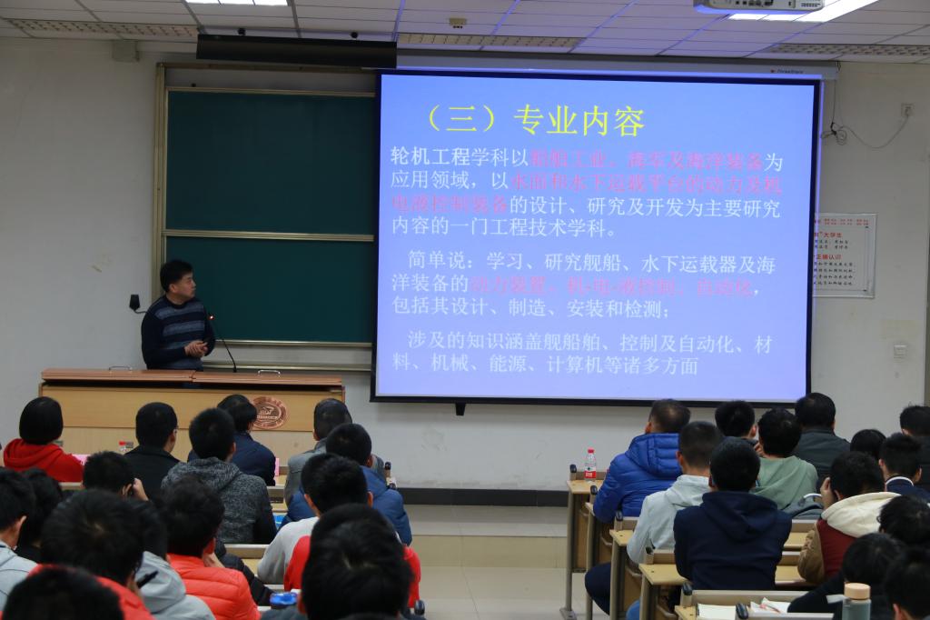 为使2018级本科生进一步了解轮机工程专业,明确今后的发展方向,船海学院于11月18日晚在东九B102教室开展了轮机系专业教育讲座。此次讲座由学院副院长李维嘉教授、轮机系主任徐国华教授,刘炎副研究员,程一伟博士四位嘉宾主讲。