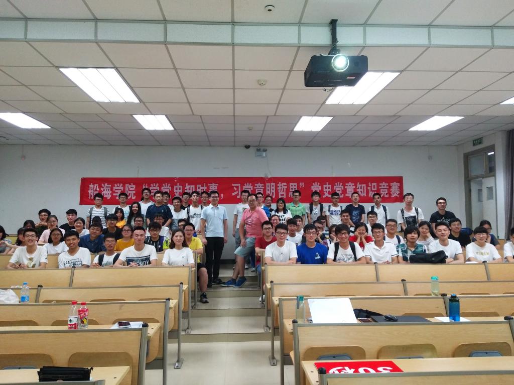 比赛环节结束,谢宇翔老师上台讲话。他首先肯定了参赛选手的精彩表现和组织者的认真精心,接着对大家提出了几点希望:一是希望同学们加强学习,读懂弄通十九大精神,研读党史党章,了解时事政治,用理论武装头脑能,树立四个正确认识,坚定“四个自信”;二是珍惜时光,认真学习科学文化知识,立足船海为中国梦的实现舔砖加瓦;三是从身边做起,从小事做起,服务身边同学,强化宗旨意识,巩固党组织在大学生中的群众基础。