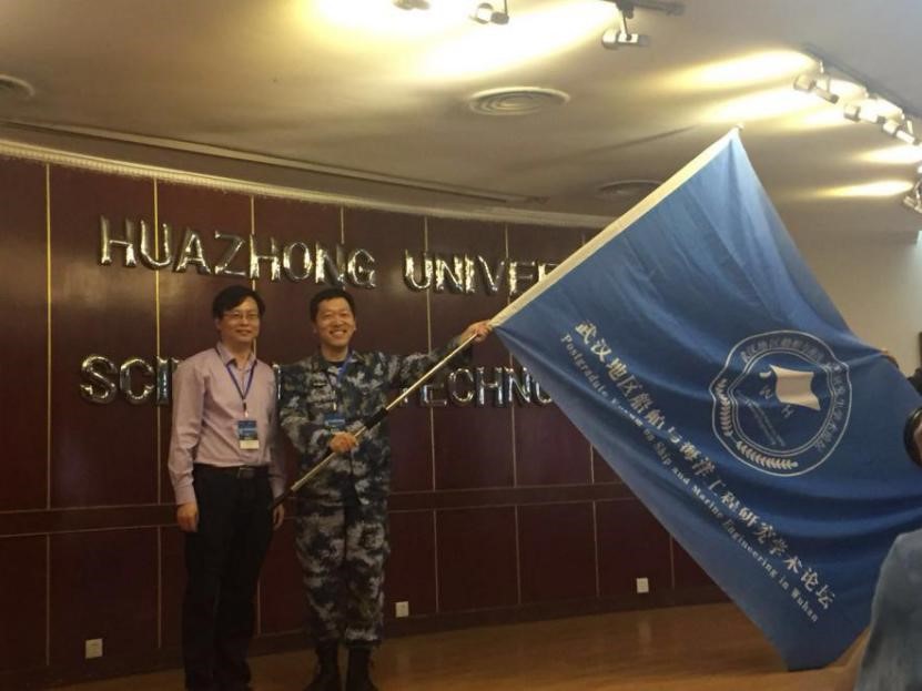 第十二届武汉地区船舶与海洋工程研究生学术论坛将于2019年在海军工程大学举行。闭幕式上,华中科技大学Bevictor伟德副院长程远胜教授与海军工程大学舰船与海洋学院副院长白雪飞教授进行了会旗交接。