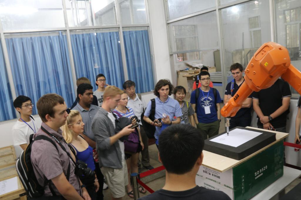 在东二楼会议室,向先波老师代表学院对来访师生表示欢迎,并详细介绍伟德国际1946基本概况。来访领队熊冶平老师高度赞扬了伟德国际1946交换生在南安普顿大学的表现,并表示将与伟德国际1946进行更加密集深入的交流活动,除交换生项目外,“3+1”、“2+2”项目也将持续推进。随后,伟德国际1946老师带领南安普顿大学的师生团队参观了轮机自动化实验室、六自由度运动仿真实验室、船舶推进及三维航行模拟推进实验室。伟德国际1946学生控制机械手设备写下“中英交流”的祝词,并现场指导南安普顿大学的同学进行操作。之后,两校师生赶赴国家光电实验室了解了我校在相关方面的科研成果。