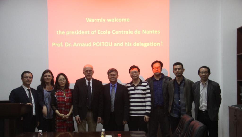 4月21日下午,法国南特中央理工大学校长ARNOUD POITOU、副校长FOUAD BENNIS等四人在学校国际交流处老师的陪同下来伟德国际1946进行访问交流,学院副院长程远胜教授、党委副书记谢宇翔老师、向先波副教授、孙江龙副教授等出席了此次会见。