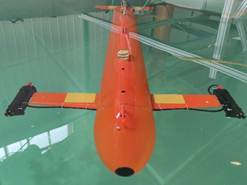 图2 飞行式自主水下机器人探测海缆应用场景(上)、水池试验(下左)及外场试验(下右)
