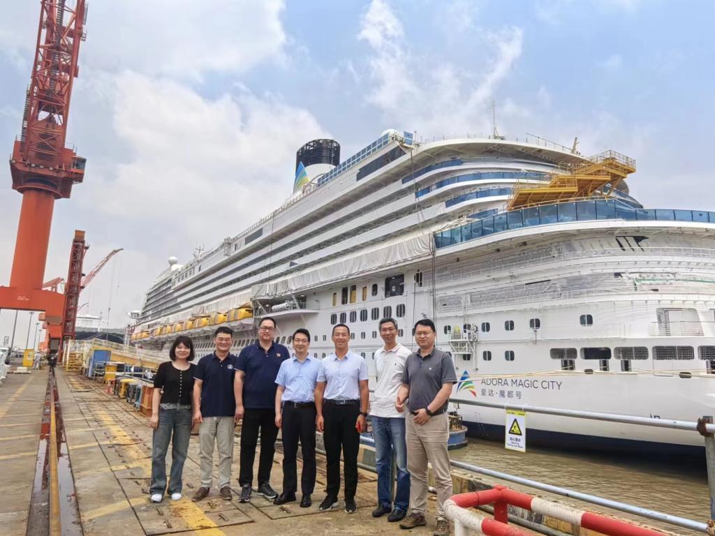 在上海外高桥造船有限公司,学院一行与副总工程师郭勇、设计二部副部长孔维文等就科研项目合作、人才培养、招聘就业等方面开展座谈交流。调研期间参观了公司展厅以及中国首制国产大型邮轮“爱达·魔都”号,实地了解大型邮轮的工程进度、人才需求和校企合作的相关事宜。双方表示此次调研将进一步推动学院与公司共建就业实习基地、深化人才培养衔接,将学院更多优秀人才聚集到海洋强国事业中来。
