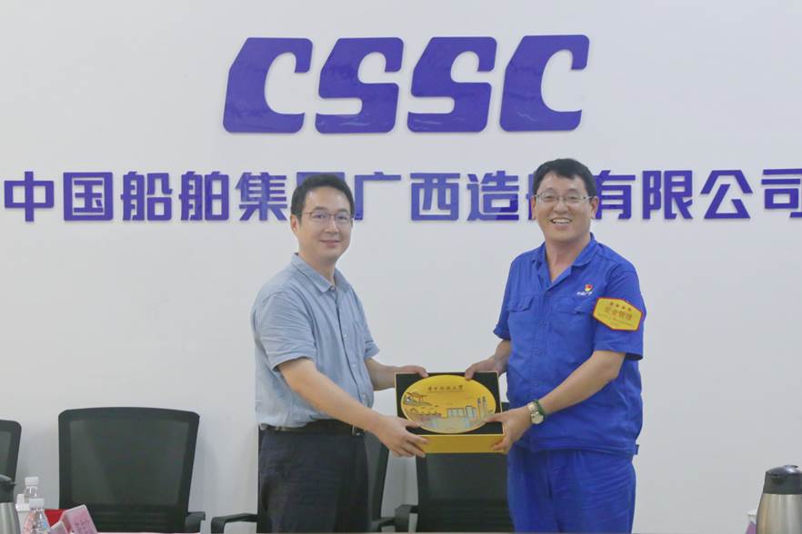院长李威向中船广西公司赠送纪念品