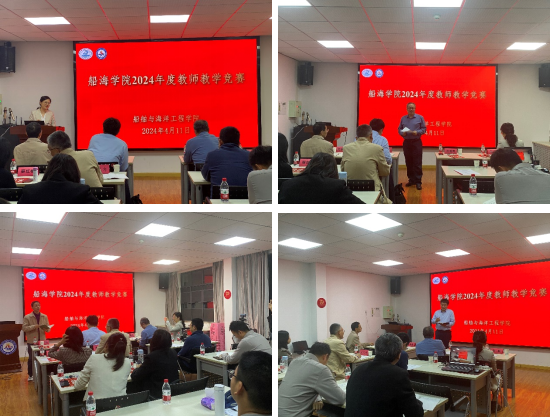 为进一步加强师德师风建设、提升新时代教师教育教学能力,不断深化课堂教学效果和人才培养质量,船海学院于4月12日在学院会议室举办了2023~2024学年度教师教学竞赛。本科生院教学质量管理办公室蔡红梅老师进行赛场指导,工程实践创新中心主任王书亭教授、数学学院副院长王湘君教授、建规学院副院长彭翀教授、航空航天学院王元勋教授担任评委。部分教师与学生代表观摩了竞赛。竞赛由学院副院长李天匀主持。