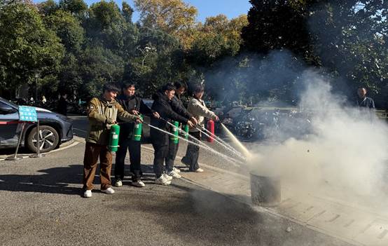 活动伊始,校保卫处校保卫处专业人员为大家讲解了消防安全的重要性,随后详细介绍了干粉与水基灭火器的特性及适用场景,并通过“提、拔、握、压”四字口诀,清晰演示了灭火器的操作要领,同时讲解了消火栓的使用步骤。