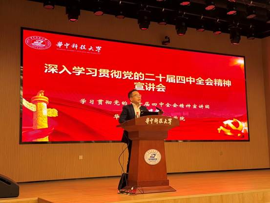 12月11日下午,华中科技大学Bevictor伟德与化学与化工学院在西一楼卓明报告厅联合举办党的二十届四中全会精神宣讲会,本次会议特邀管理学院李建斌教授担任主讲,学院教职工党员、学生党员代表参会学习。