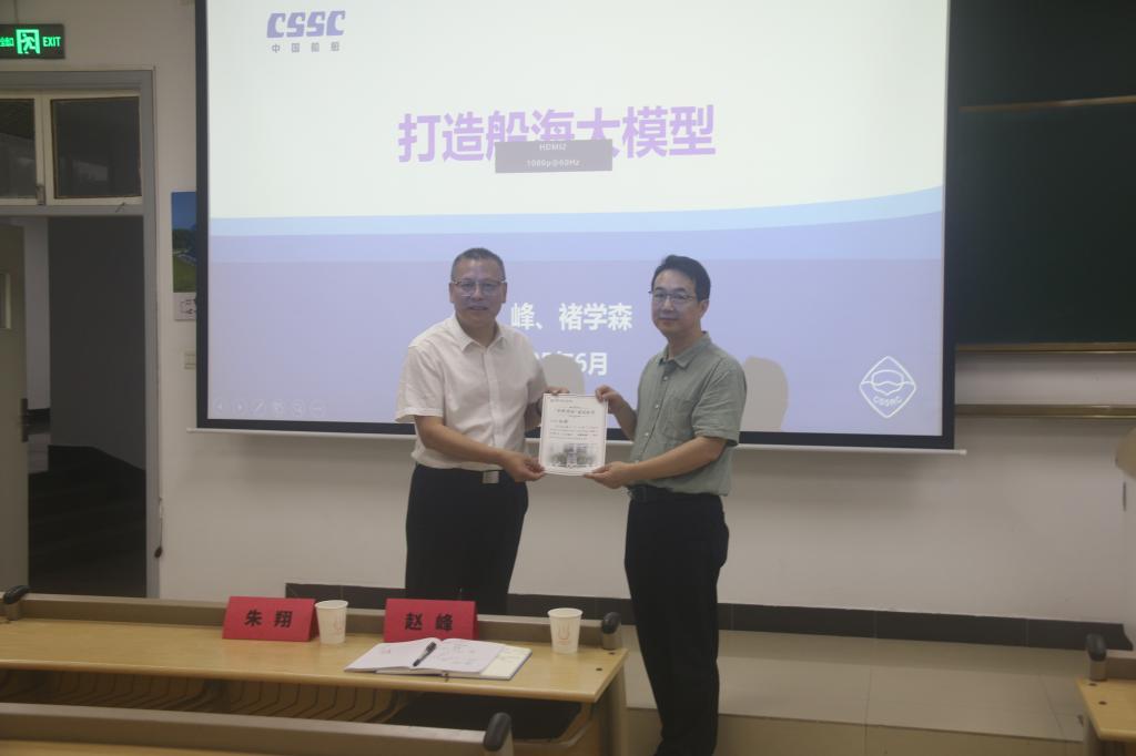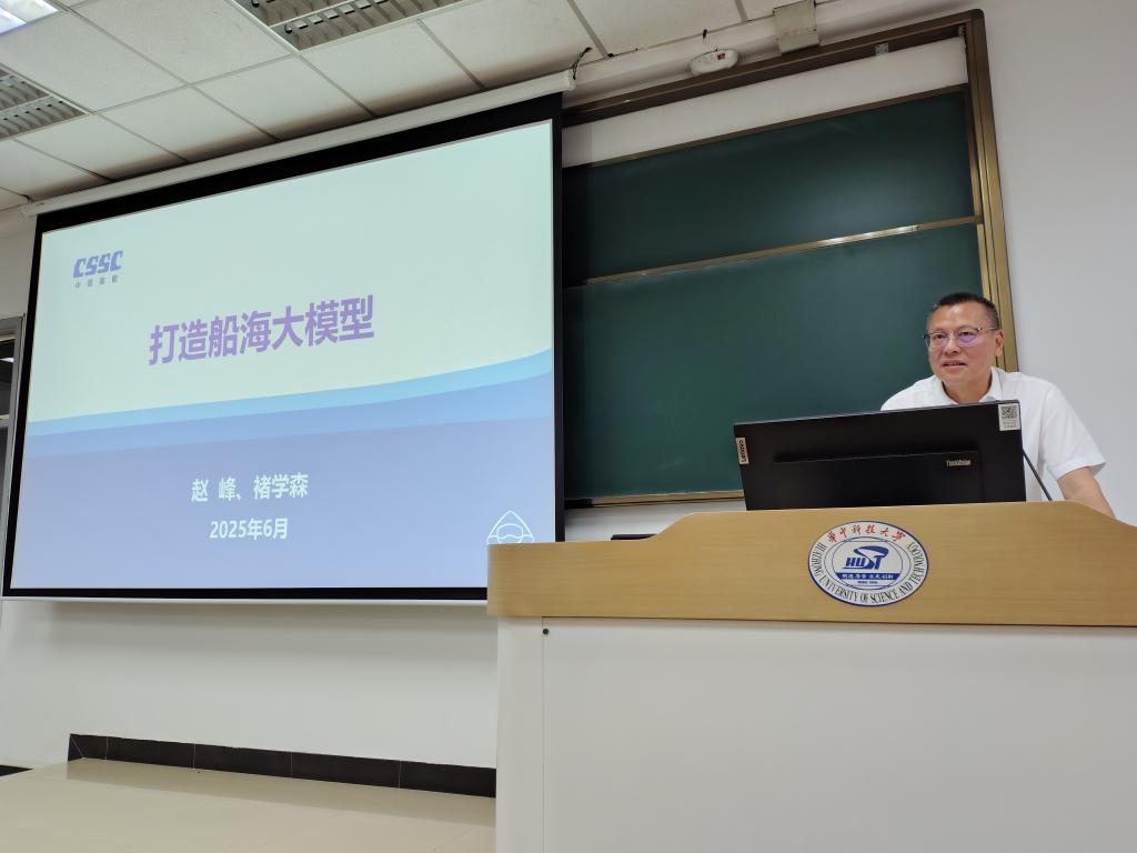6月11日晚七点,船海学院邀请校友赵峰做客2025年第四期(总35期)黄群讲坛,围绕“打造船海大模型”这一主题与同学们进行了分享交流。院长李威、副院长朱翔及辅导员杨冰出席本次活动。