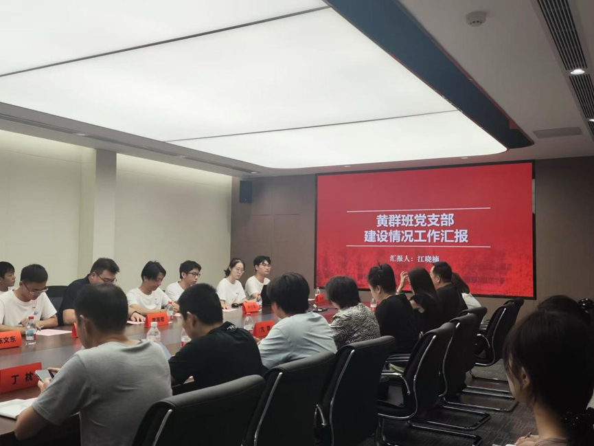 接着,黄群班党支部书记江晓楠汇报了黄群班党支部的建设情况,从“学习黄群精神、践行黄群精神、弘扬黄群精神,引导同志们选择成为黄群”四个方面汇报了黄群班党支部的建设思路。
