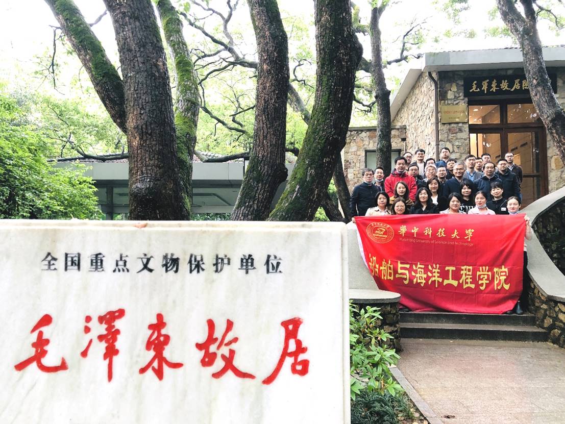 为庆祝中国共产党成立100周年,深入贯彻落实中央和省委部署要求,深化巩固“不忘初心、牢记使命”主题教育成果,2021年4月22日,船海学院组织党支部活动,院领导班子成员带领教工党员同志们参观位于东湖宾馆梅岭一号的毛泽东故居。