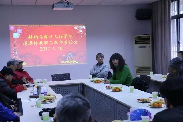 接下来,萧莉书记总结了过去一年的党务工作。萧书记用一句话来概括2016年学院的党务工作:任务重,工作量大,但在各位老教师的积极的配合下完成的相当出色。在宣传方面,也开始向多方位、立体化转变,有了新的宣传形式,如微信公众号“船大人”。此外,对船海学院的部分优秀校友进行了走访,也招待了部分返校的校友,如821班校友返校。学院的领导也经常慰问、看望关心退休老教师,组织了多次集体活动,被学校评为离退休工作优秀集体。最后,萧书记祝愿各位老师身体健康,阖家欢乐,也愿船海学院在2017年能够再上新台阶,越来越好。