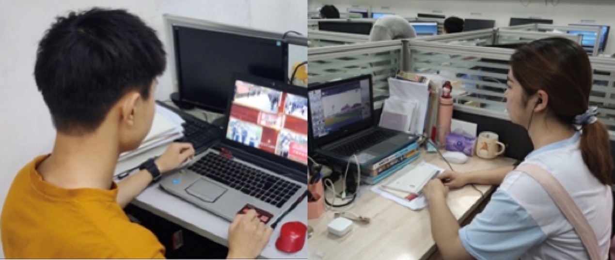 学生在宿舍和实验室收看直播