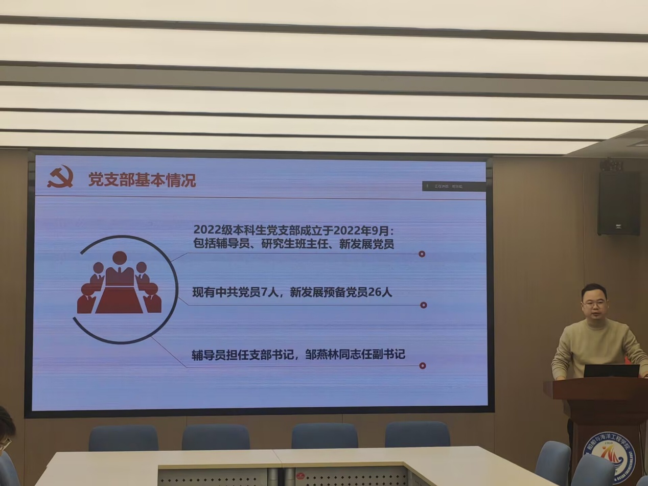 2025年1月10日下午,船海学院2024年度学生党支部书记述职交流会在东二楼一楼会议室召开,学院学工组长曹金梅、研工组长靳丰富和团委副书记刘彪老师出席本次会议。