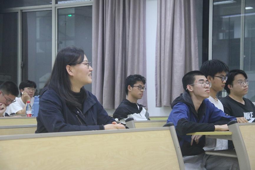 党建辅导员曹金梅也到场旁听,进行总结发言。她号召同学们以优秀党员为榜样,不忘初心,寸阴是竞,潜心琢技,勇担使命。