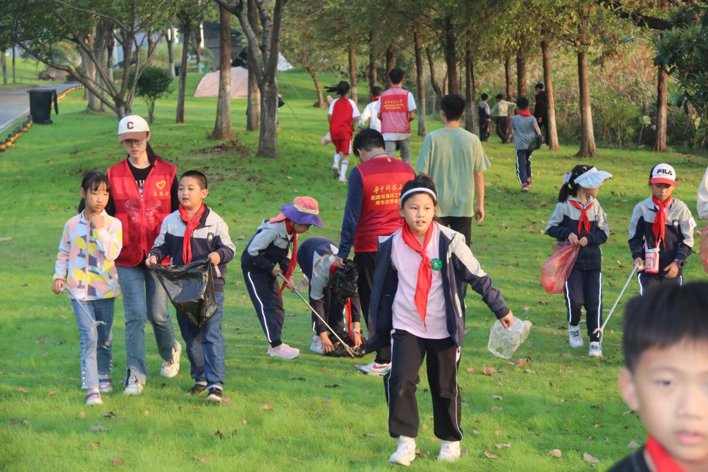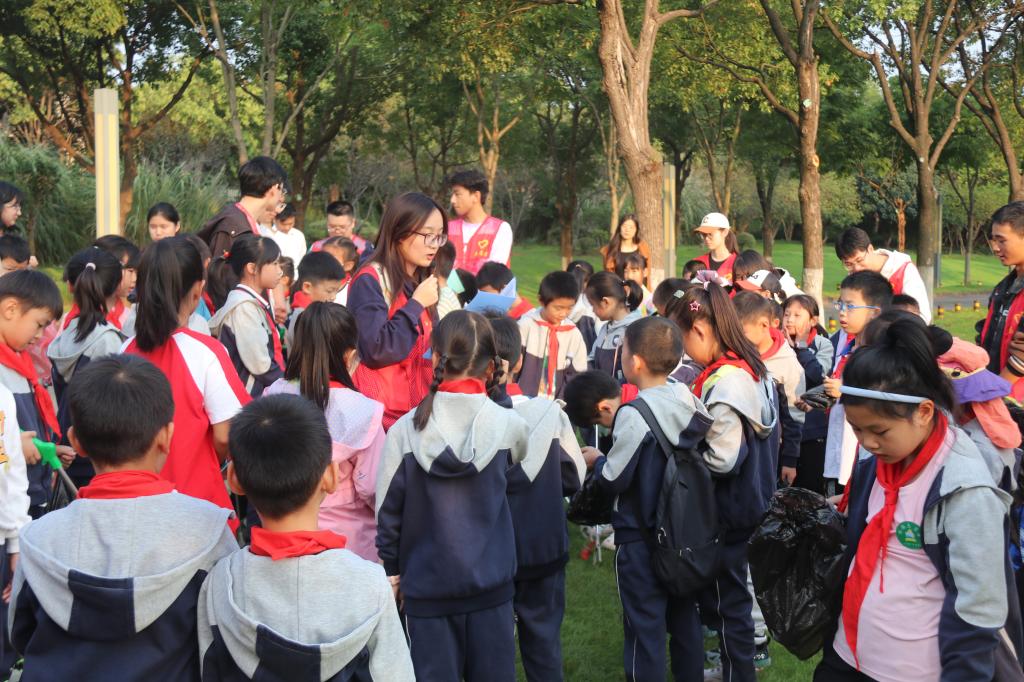 在制作完手工船模后,志愿者带着孩子们来到社区附近的严西湖畔进行拣垃圾环保活动。在志愿者的陪伴下,小朋友们两人为一组,分工合作捡起湖边的垃圾。在捡垃圾的同时,志愿者还为小朋友们科普了环境保护的相关知识,并引导大家树立正确的环保理念。
