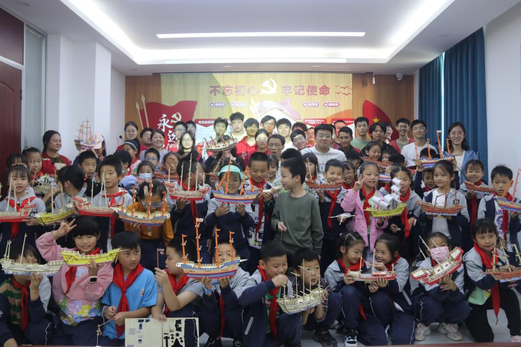 随后,为了培养红焰社区小朋友们的动手能力与对科学的兴趣,船海学院的志愿者们带领孩子们动手制作手工船模。在志愿者们的帮助下,红焰社区的小朋友们阅读着说明书,摸索着将一块块木制零件拼接起来,组成一艘艘结构精巧的大船。拼接完成后,小朋友们举起手中的船模,一起拍了大合照,每个小朋友和志愿者的脸上都洋溢着快乐的笑容。