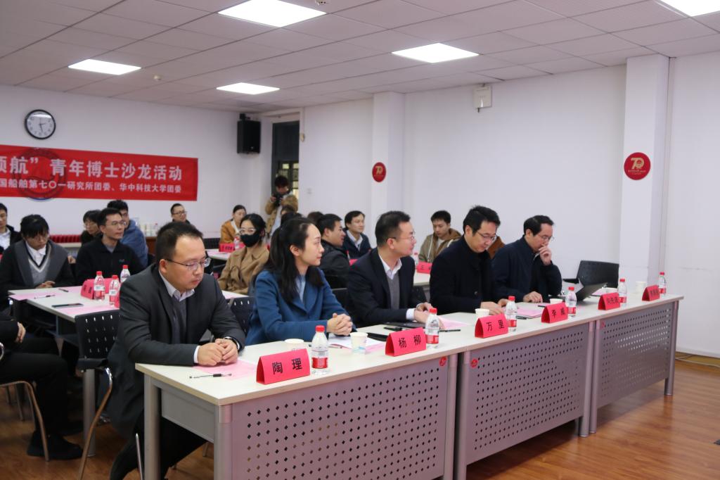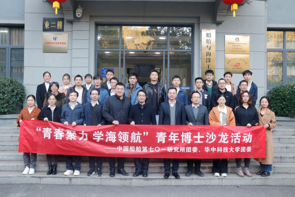 11月17日,中国船舶集团第七〇一研究所青年博士生沙龙在华中科技大学东二楼N205会议室顺利举行,本次活动由中国船舶集团第七〇一研究所团委和华中科技大学校团委联合举办,以“青春聚力,学海领航”为主题,旨在通过分享船舶人才职业规划与科研经验,促进船舶青年的学习成长、沟通交流。中国船舶集团第七〇一研究所团委书记万里,华中科技大学团委副书记杨柳,船海学院院长李威,船海学院副院长向先波等出席活动,船海学院党委副书记李周密主持活动。