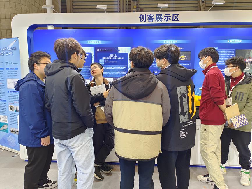 另外,伟德国际1946两项海航器大赛特等奖作品参与此次中国造船工程学会创客展区展览,分别是A2类特等奖《海洋航行器声诱饵发射的瞬态噪声预报分析技术》与C1-1类特等奖《基于stm32的智能航行船》。伟德国际1946学生代表积极向各位参展人员介绍两项获奖作品,并与上海交通大学等高校的同学开展交流学习,展现了伟德国际1946学子崇尚科学、实践求知的精神风貌。
