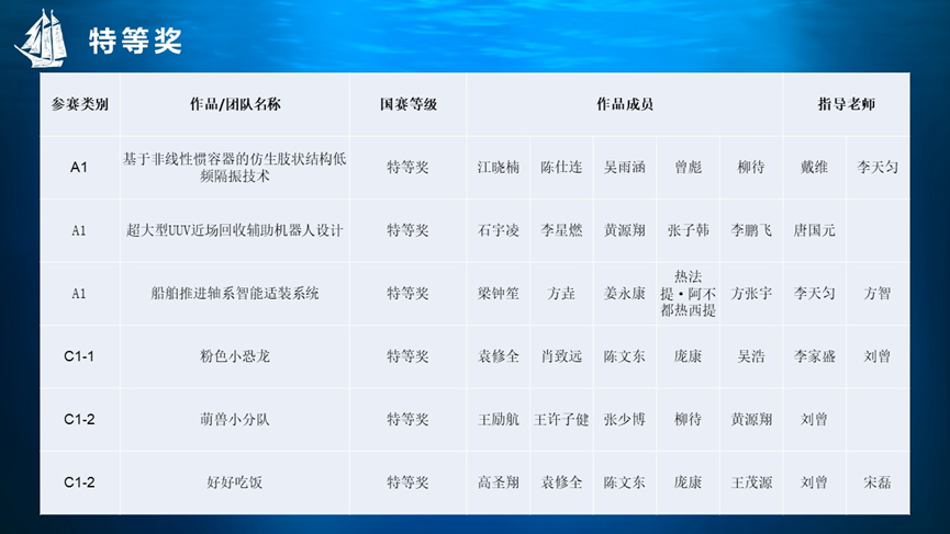 全国海洋航行器设计与制作大赛我校获奖团队如下: