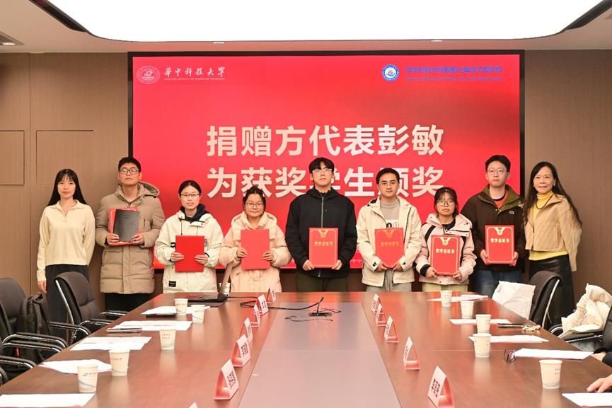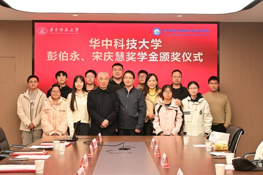 2025年11月20日下午16:00-17:00,华中科技大学彭伯永、宋庆慧奖学金颁奖仪式在东二楼B206会议室顺利举办。原华中科技大学副校长于清双,奖学金捐赠方代表彭敏、范彭超,院长李威及7名获奖学生共同出席本次活动。党委副书记李周密主持活动。