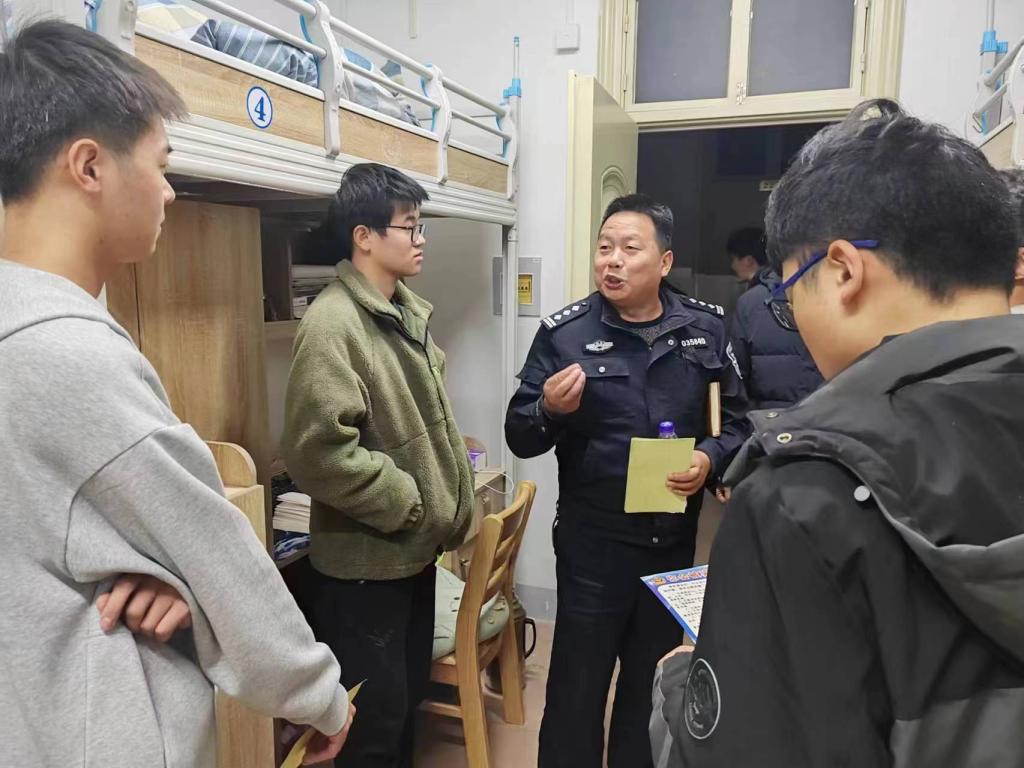 讲座结束后,熊警官与靳丰富老师带领班级安全员深入学生宿舍,为每个宿舍发放发诈骗宣传单,普及反诈骗知识。